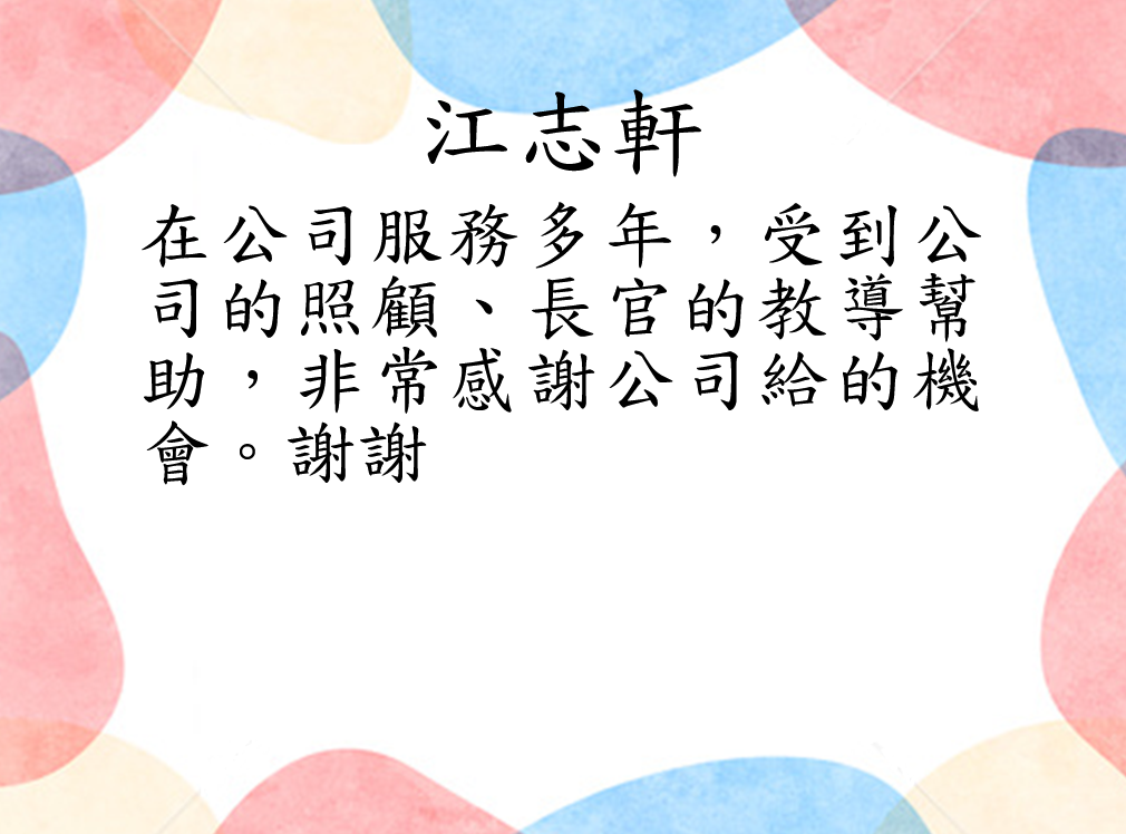 附註說明: 1、須由本人親自至總公司簽收(需於6/10仍在職同仁 )。 2、今年度將製作新版外套因版型會有略微不同,故請同仁同時回公司試穿外套尺寸(外縣市部份將另外套量)。 3、如無法於指定時間回公司,請於群組中標記人事家臻。![]() 台灣聯通停車場開發股份有限公司 啟 中 華 民 國 113 年 5 月 31 日 |