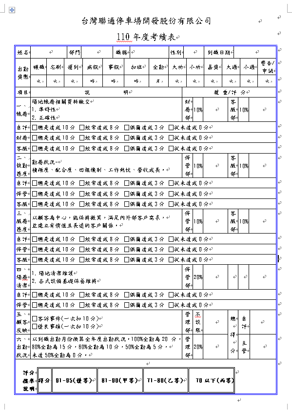 今年度將依新修訂之「110度考績表」進行全體員工評核 |