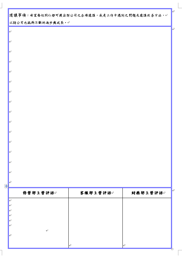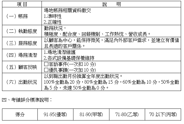 三、考核作業方式:考績表正面分六項需勾選完整,背面為建議事項需填寫完成。 ![]() |