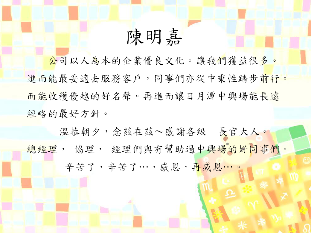 各位辛勤的同仁們: