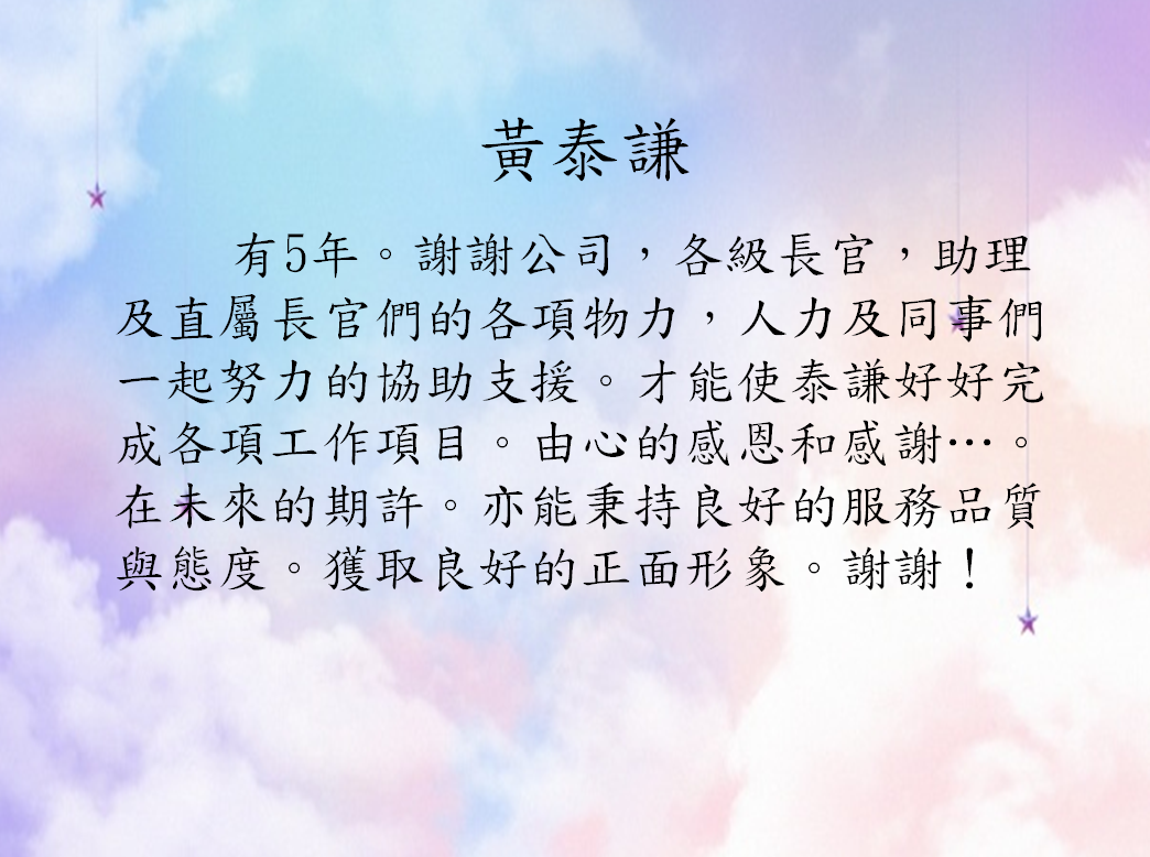 為感謝同仁們的努力,將發放特別津貼,以慰勞大家(現金方式)。 |