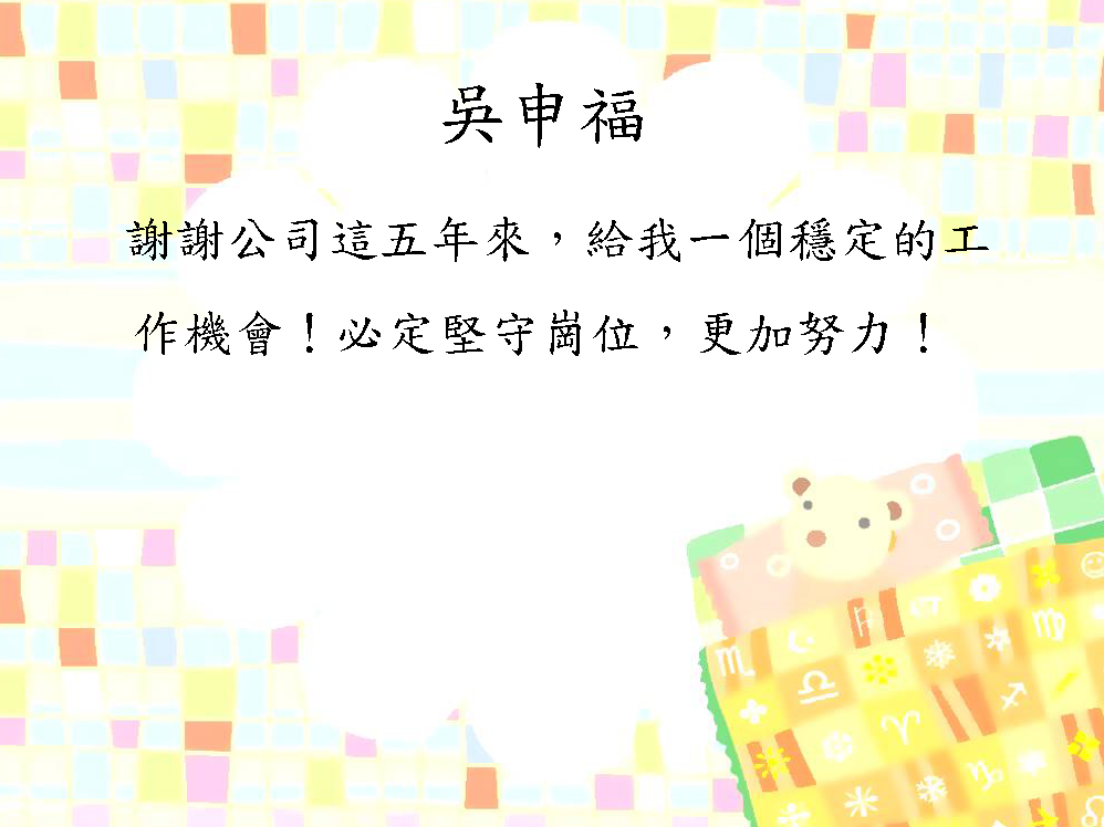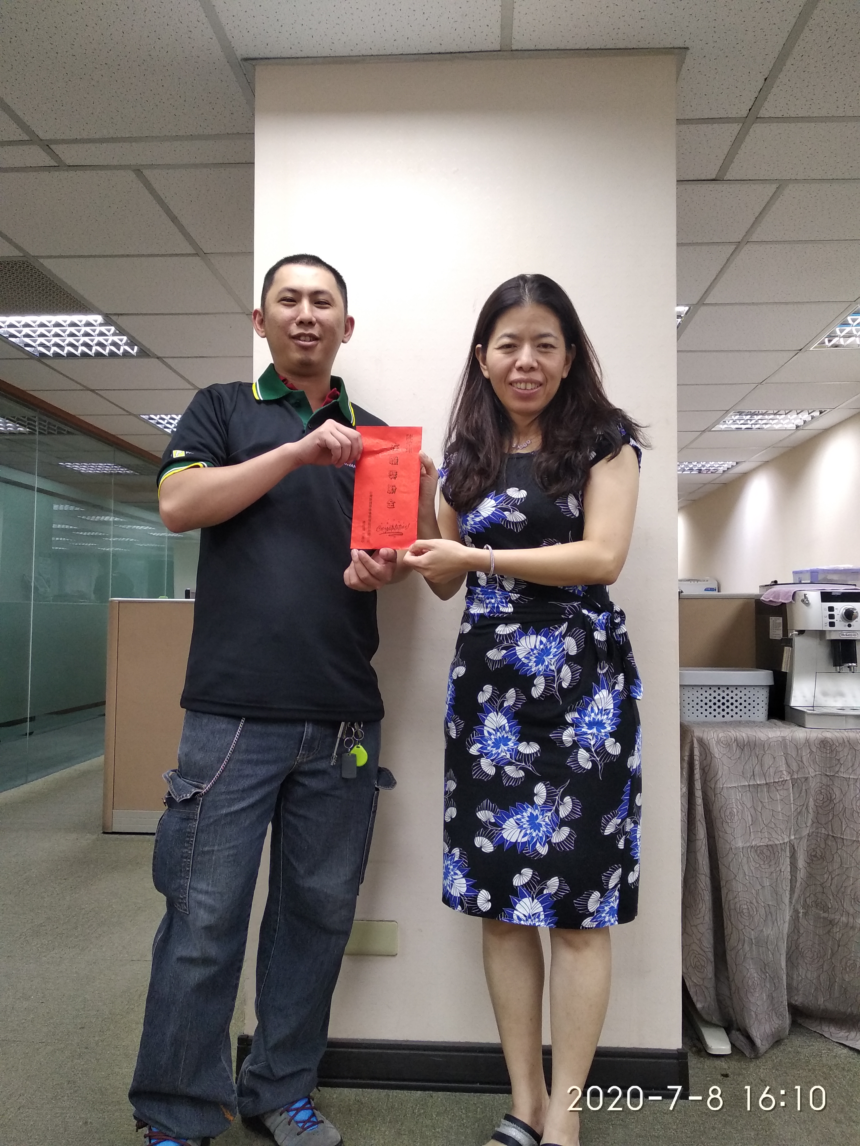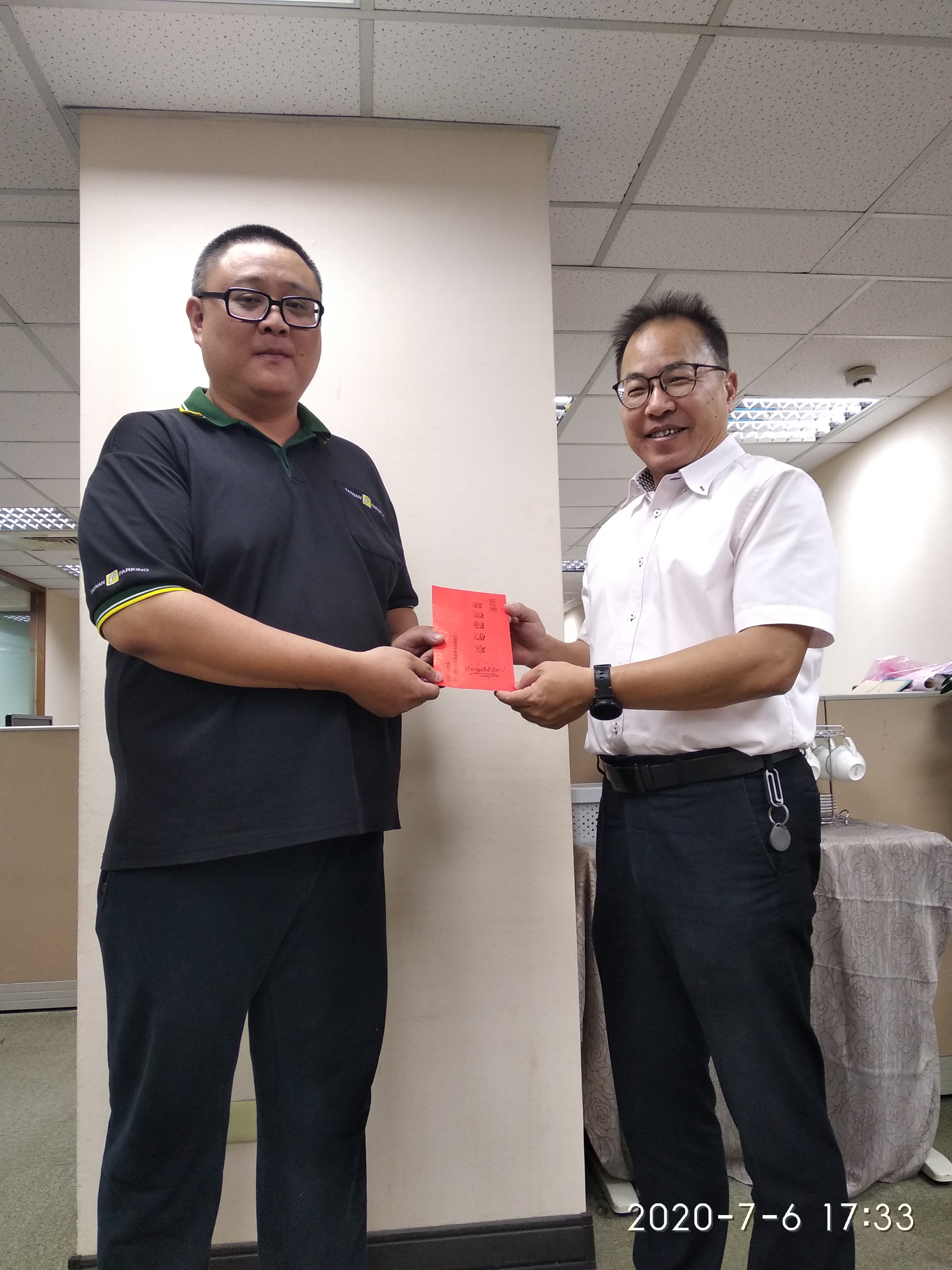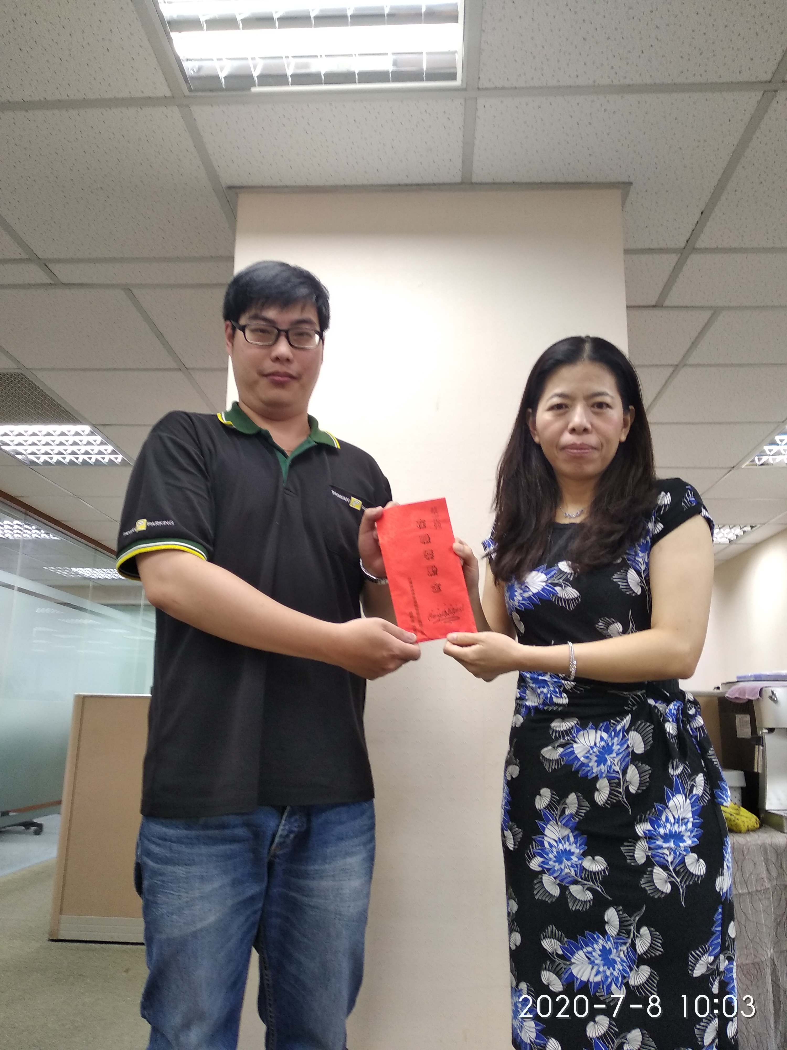 一○九年度07月份正職人員在職獎勵金領獎感言