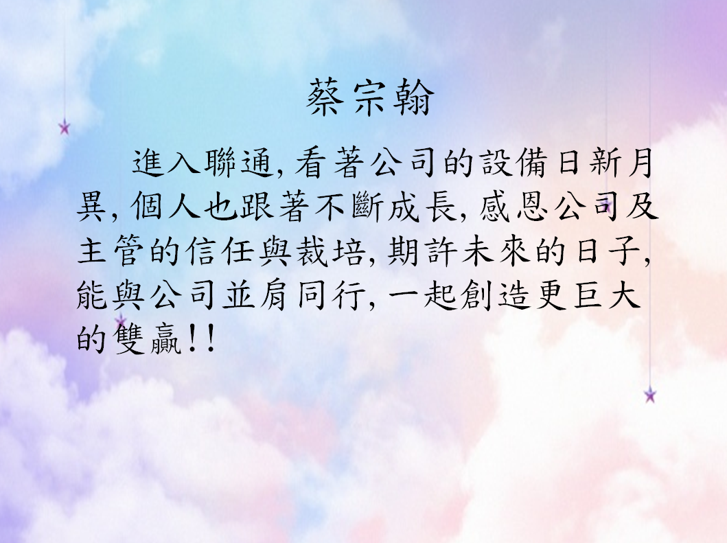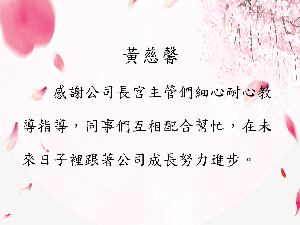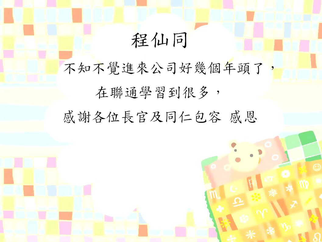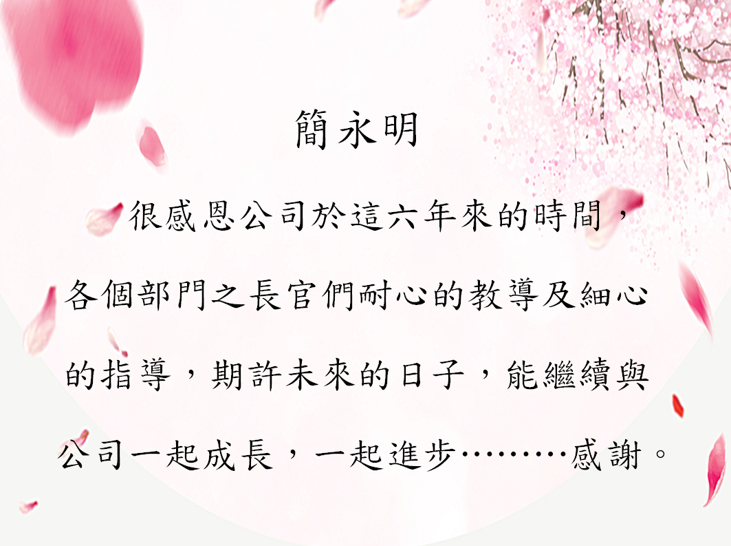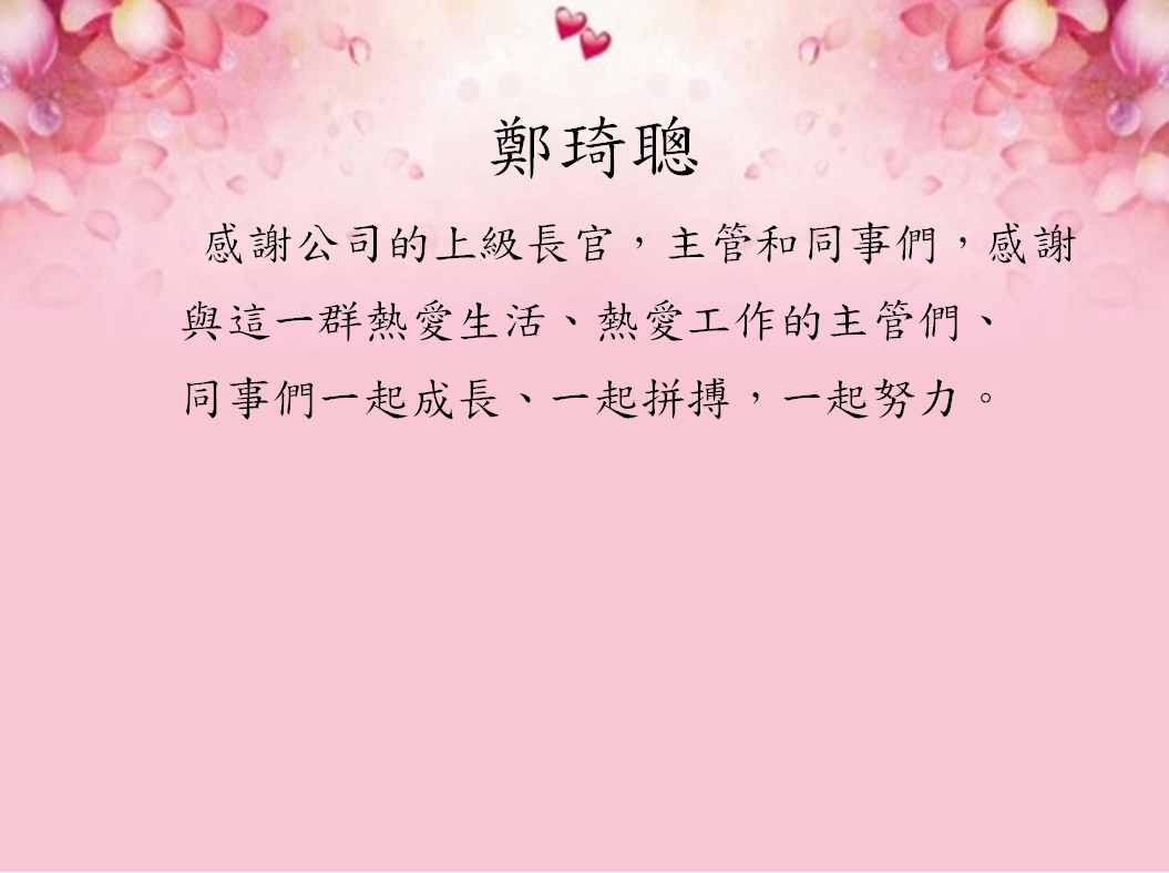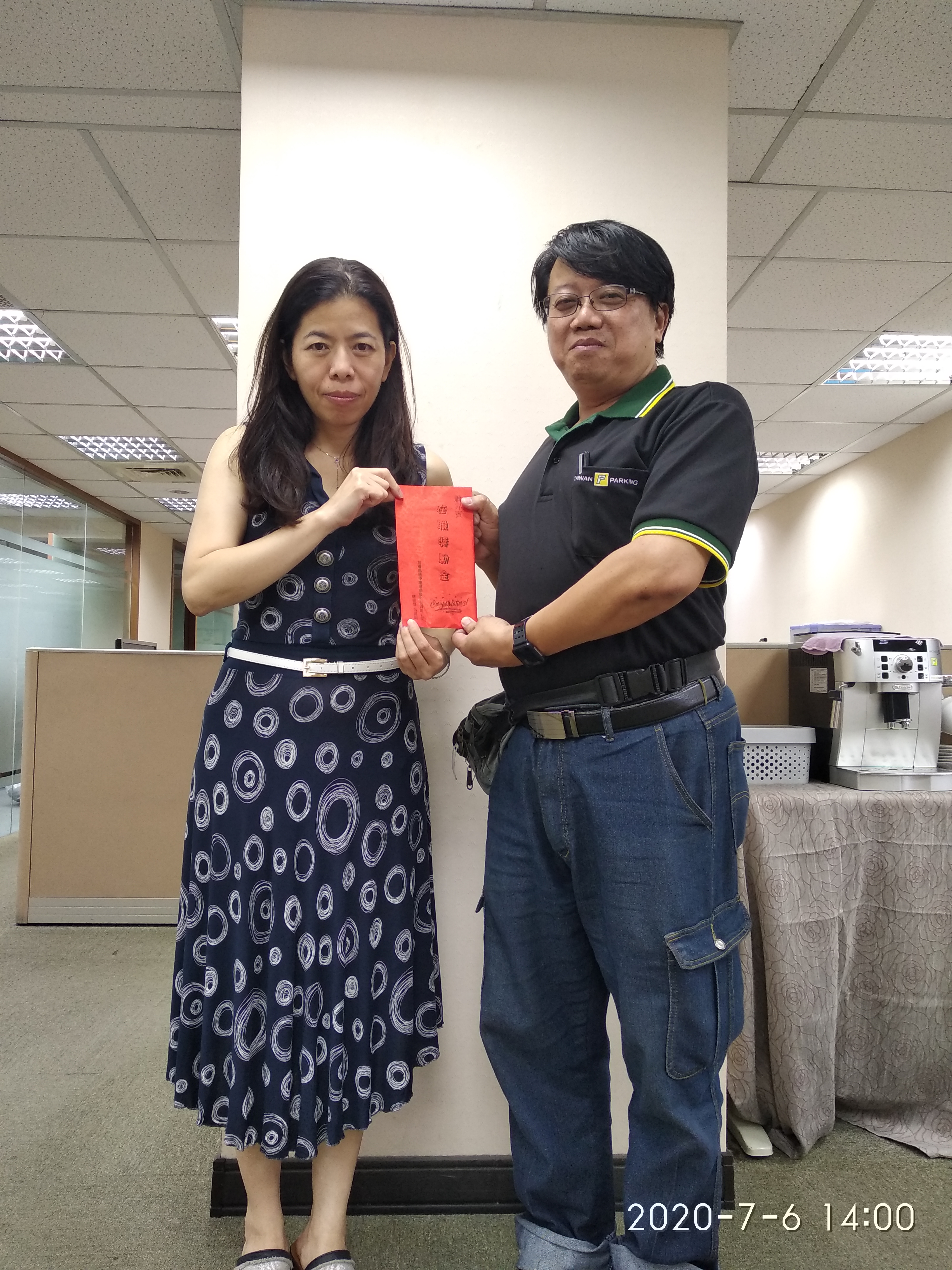 一○九年度07月份正職人員在職獎勵金領獎感言