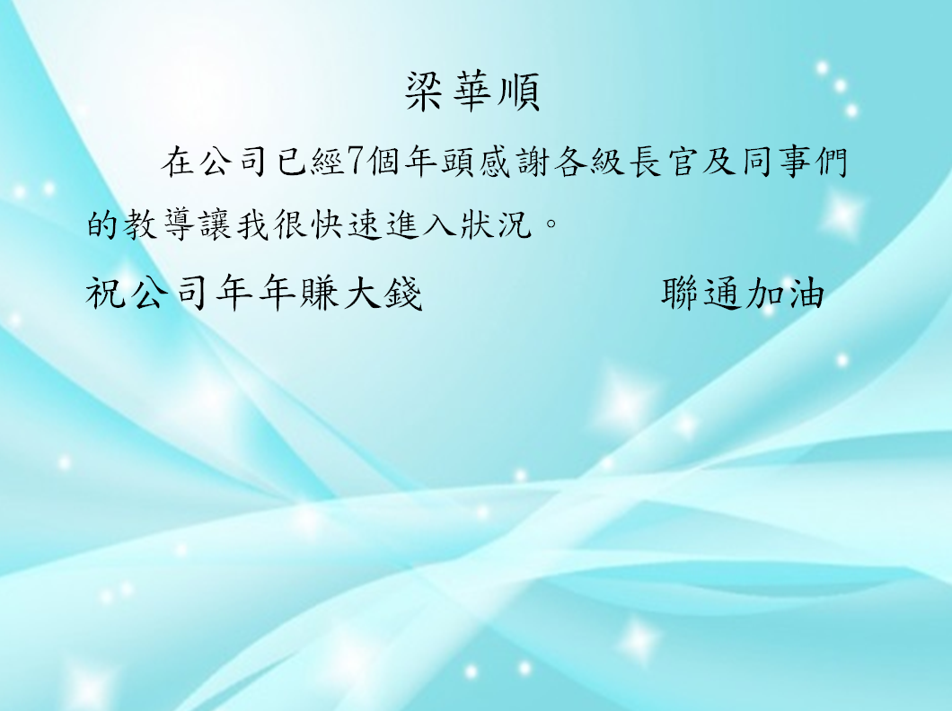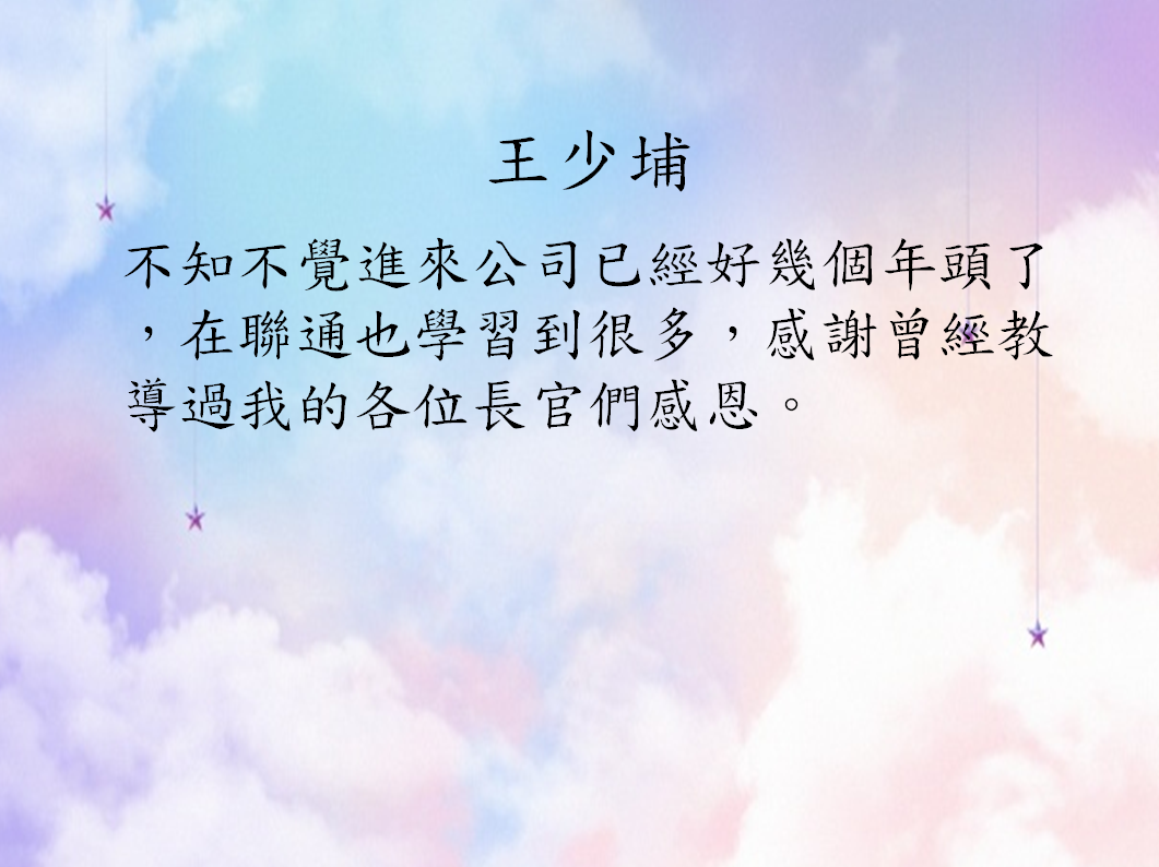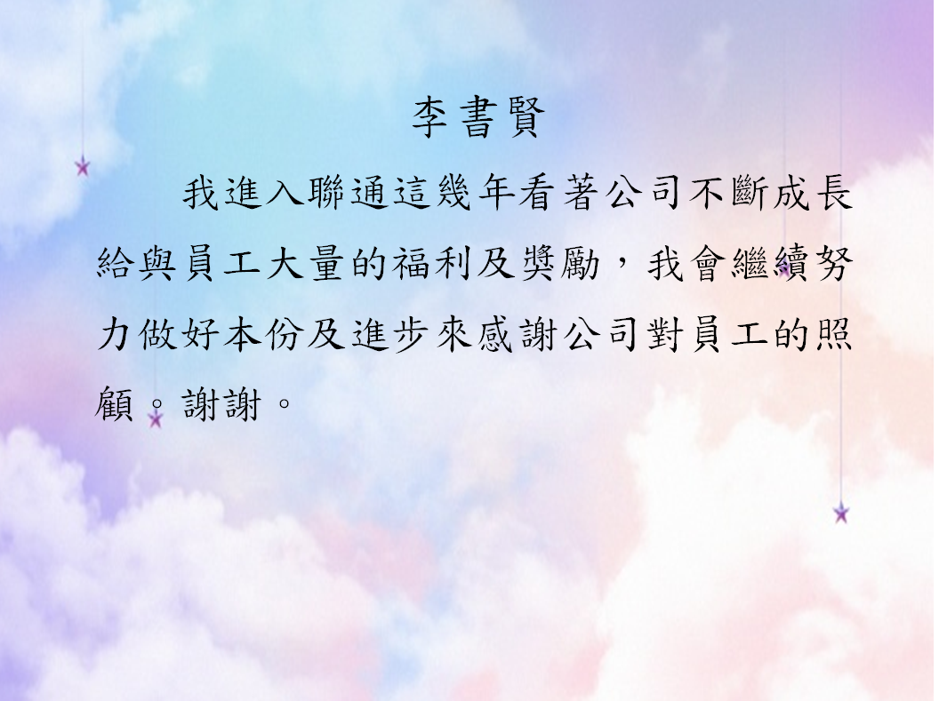 面臨這些未知,公司仍不忘獎勵一起努力之優秀同仁。盼大家也能共體時艱,讓我們一起攜手順利平安渡過這場戰役。