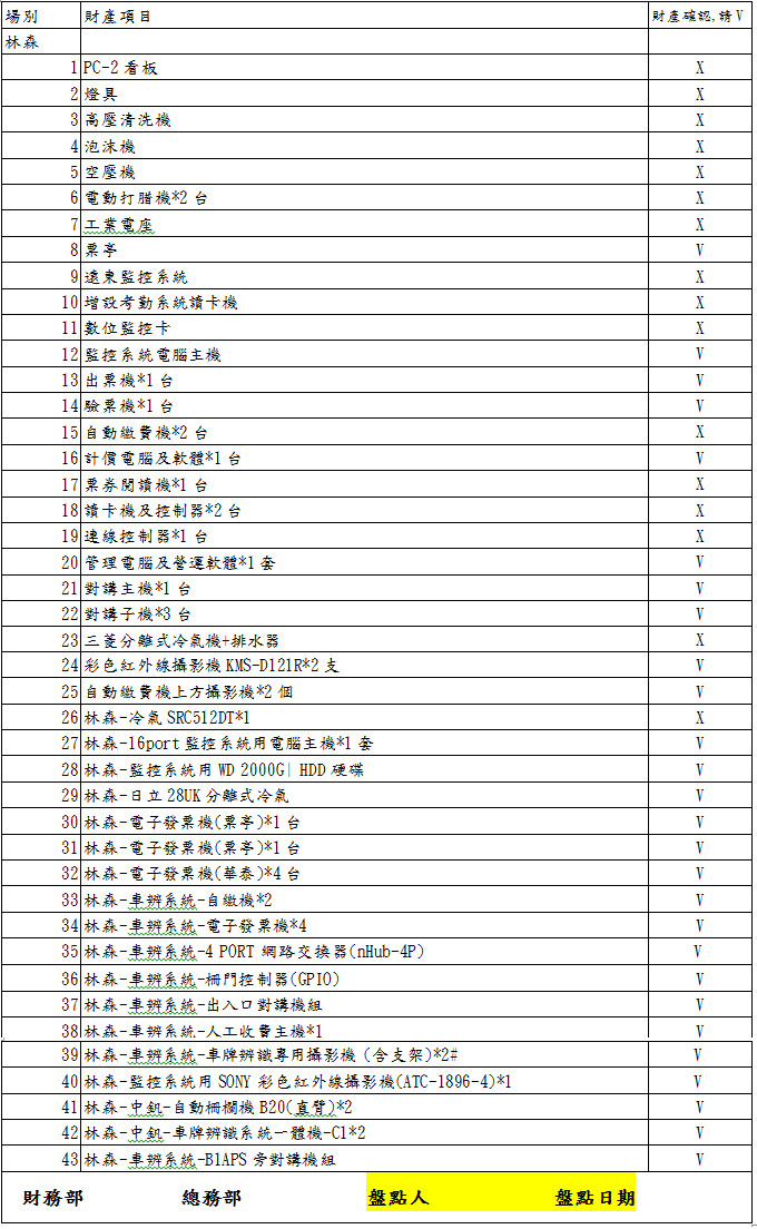 Ps.注意事項: 如果現場有我們公司資產沒在清單上的物品,也請大家幫我寫在空白處. (只要是固定資產(有形資產)都要寫上à跟經營有關的設備、器具.可以拿到下一場用的)