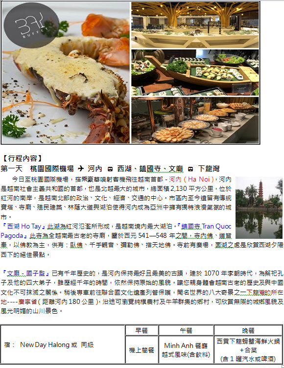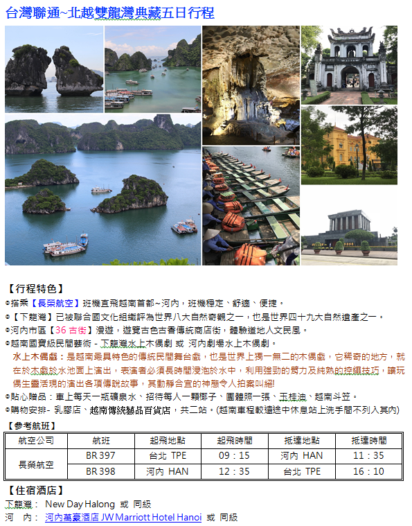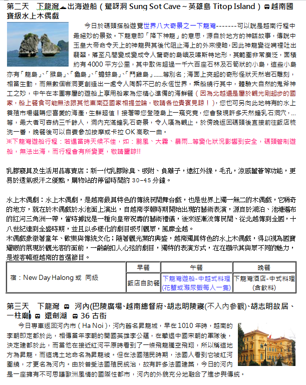 108年度員工旅遊-北越雙龍灣典藏五日行程