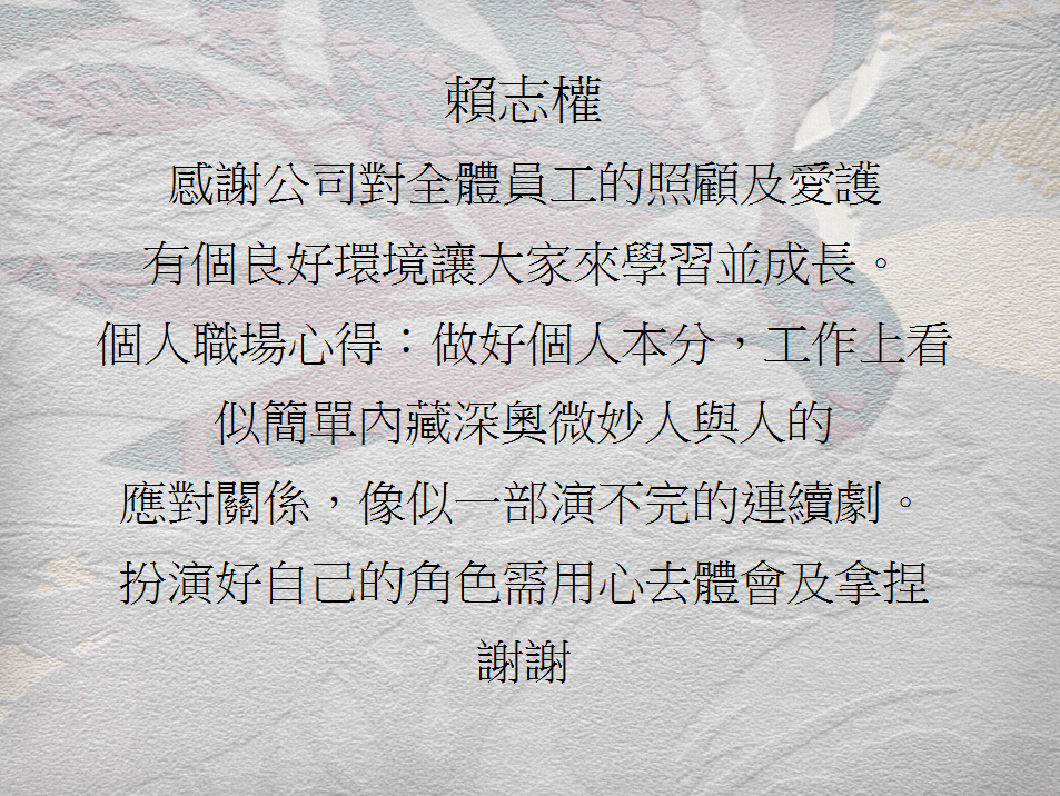 以上六名人員,對於現場的場務、環境及狀況極具熟悉與客人間有良好互動,自107年10月迄今出勤狀況良好,配合並能落實公司指示忠誠度極高,故提報晉升儲備場長乙職。