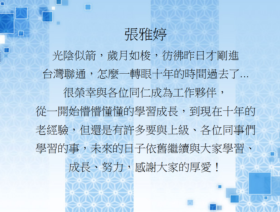 一○八年度2月份正職人員在職獎勵金領獎感言