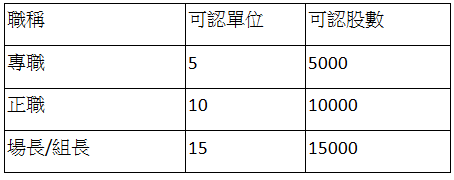 員工凡任職滿一年者(106年9月1日前到職),均可依目前職位認購公司股票。