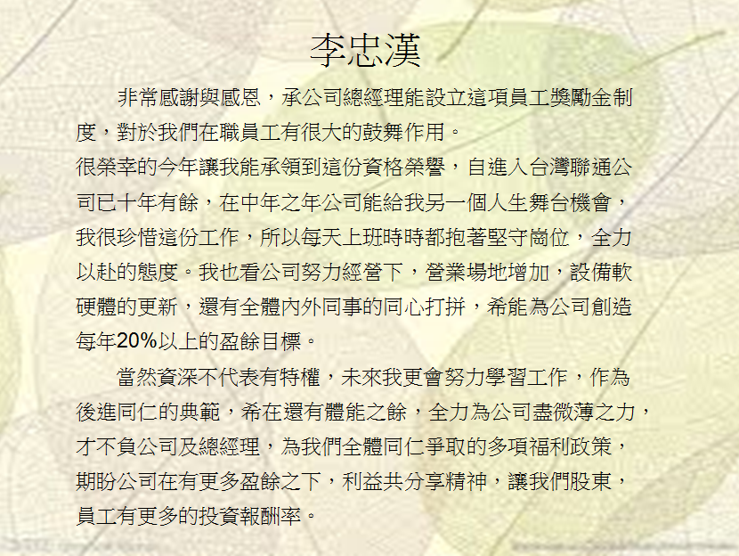 一○六年度股利已於107年8月15日發放,股利發放通知書已於7月中旬給各位,詳細內容請參閱通知書,有認購股票的同仁,請留意帳戶餘額是否增加(不要與獎金混淆喔)