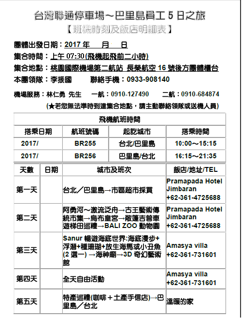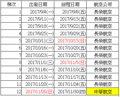 員工旅遊梯次及航班如下,屆時請自行前往桃園中正機場集合…如時間上有微調,會再通知。