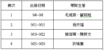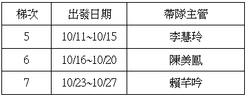參加公司員工旅遊於十月份出團的梯次,含以下三梯