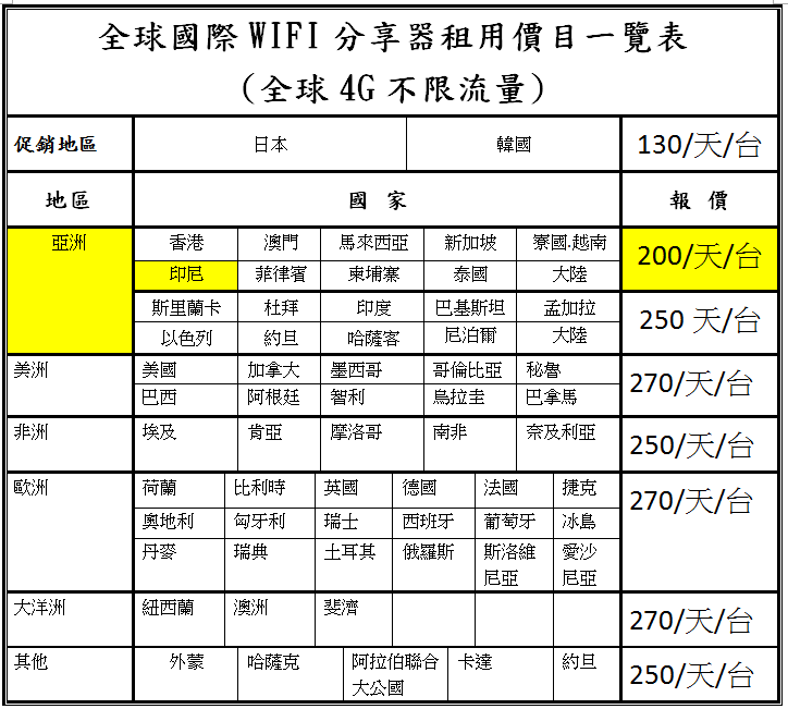 若有需要於當地使用網路並租借WI-FI分享器的同仁