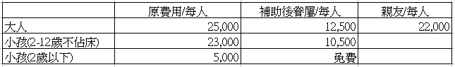 小孩(2-12歲不佔床):23,000元,只需負擔10,500元。