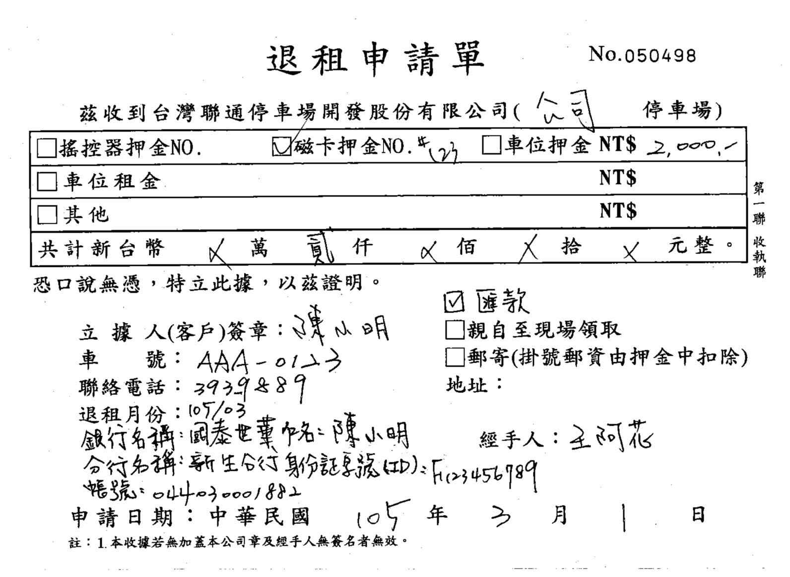 一. 必須為退租本人的帳戶,如不是本人帳戶需填寫轉讓同意書。